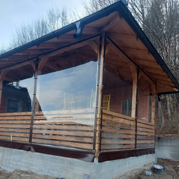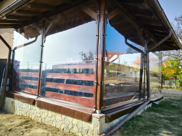 Confectionam folie transparenta cu prindere simpla pe bride sau pe rulou manual / automatizat cu telecomanda din materiale de calitate superioara la preturi avantajoase si design deosebit. Foliile transparente sunt ideale pentru proprietatile private, dar si pentru cafenele si restaurante cu terase in aer liber sau amenajarea spatiilor pentru fumat.