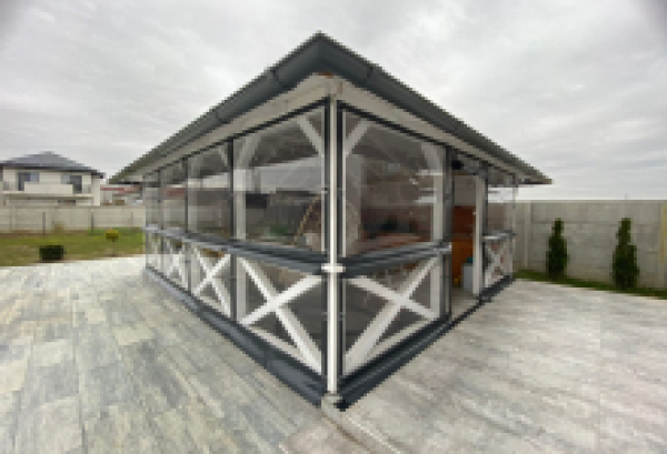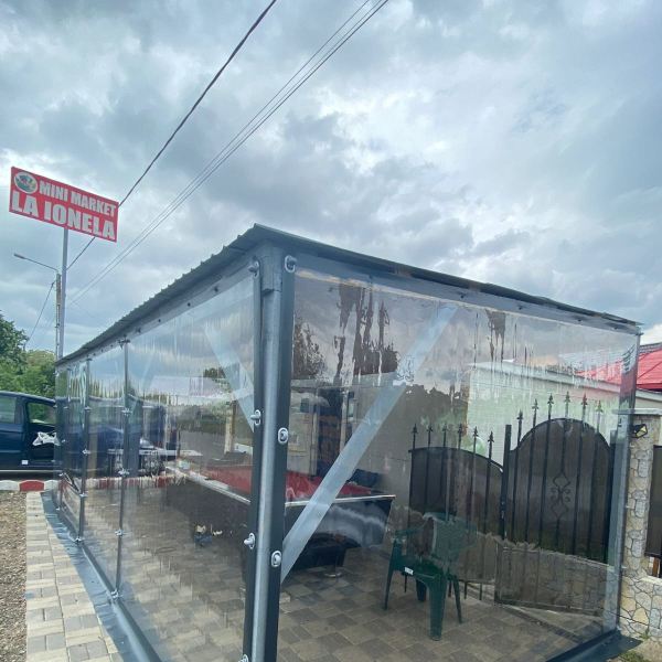 Pe langa un aspect placut, inchiderea cu folie transparenta aduce confort in orice sezon. Vara protejeaza de vant si ploaie, iar iarna pastreaza caldura si impiedica patrunderea frigului. Este o investitie care creste valoarea si functionalitatea spatiului tau exterior.