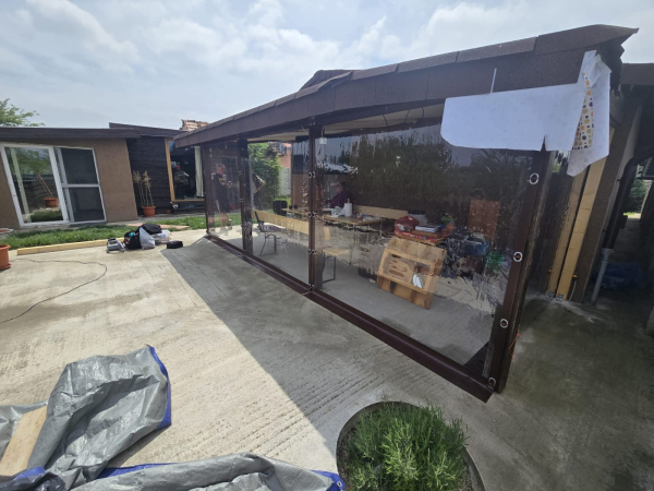 Pe langa un aspect placut, inchiderea cu folie transparenta aduce confort in orice sezon. Vara protejeaza de vant si ploaie, iar iarna pastreaza caldura si impiedica patrunderea frigului. Este o investitie care creste valoarea si functionalitatea spatiului tau exterior.